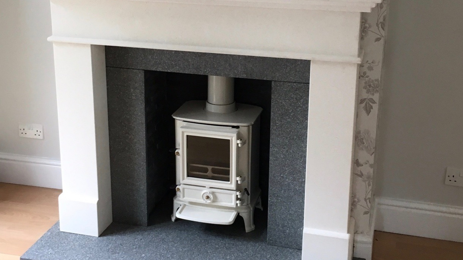 You would think knowing all of our products inside and out would make choosing what to have in my own living room easy. Sadly not and there was a lot of "umming" and "ahhing" before I finally (or should I say my wife) finally settled on the adorable Brunel 1A in Ivory Enamel with Stacked Slate Chamber and the Seacliffe Surround in Limera White Limestone and Grey Flamed Granite Slips and Hearth.