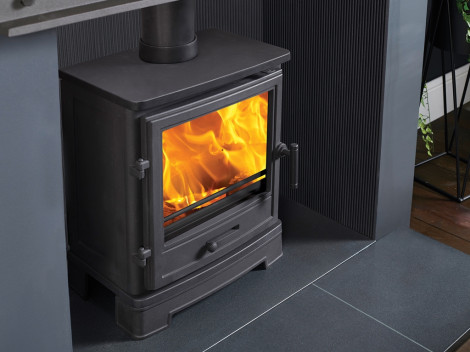 A highly efficient stove from our new ECO 2022 stove range, DEFRA approved for burning wood in a smoke control area. The Bassington Eco comprises a cast iron construction for durability and maximum heat, large glass picture window, airwash system for maintaining an optimal view of the flames and protected with a Lifetime Warranty. Suitable with a 20mm light duty hearth, the Bassington is also available in Warm White Enamel with a selection of three different bases.