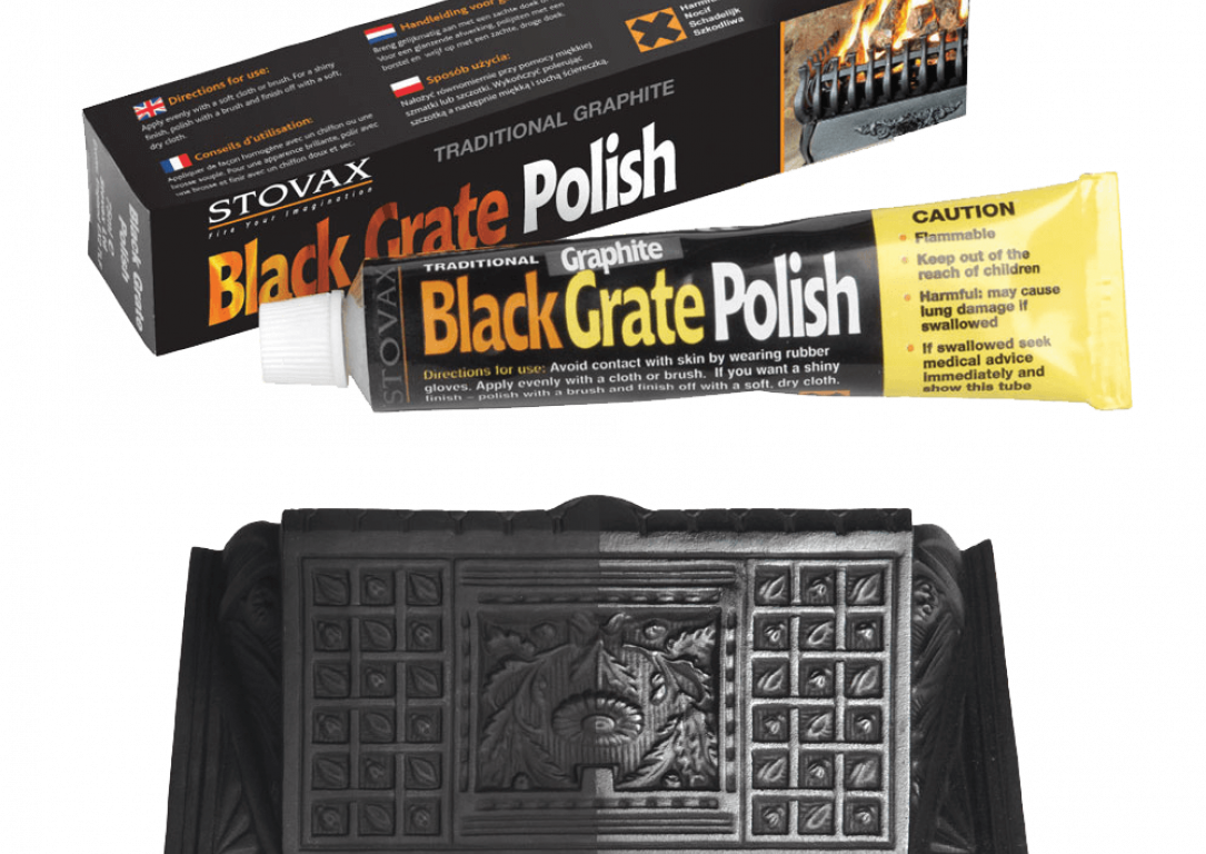 Wax-based graphite polish, giving a brilliant silver-black finish to cast iron stoves and fireplaces.