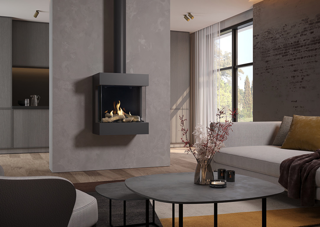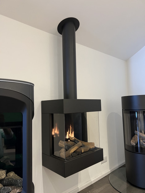 The futuristic Diablo Next really is an impressive centrepiece that is hard to beat in terms of impact and style. Suspended without a chimney breast it is mounted directly to the wall and is easy to install. This fire also comes with a matching flue cover.