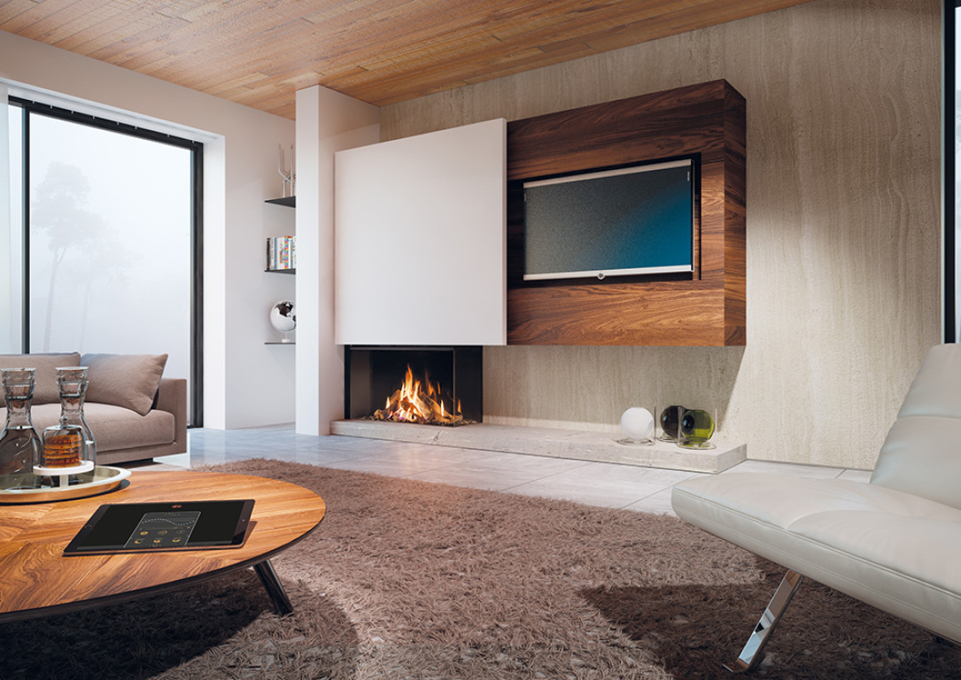 The ultimate corner fire, The Maestro 105/2 Eco Wave is a 2-sided corner gas fire with the very finest log fire display. There is a choice of striking interior finishes and the option of Clear View glass for an authentic open fire look. The Easy release door system allows you to open the glass from the top or side for ease of access.