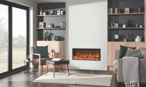 The Gazco eStudio 85R Inset Electric Fire is the smallest of the range. With multiple flame effects and colourful Chromalight® LED system, all accessible from the remote handset, this stunning electric fire can create the perfect ambience at just the touch of a button, with or without the heat.