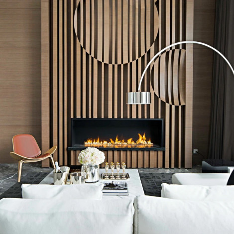 Its self-contained construction means your fireplace can be framed into wood or metal studs, providing installation freedom and flexibility for builders and creating a striking addition to a feature wall. It comes with an automatic fuel pump and can be turned on and controlled via a smartphone from the comfort of your seat.