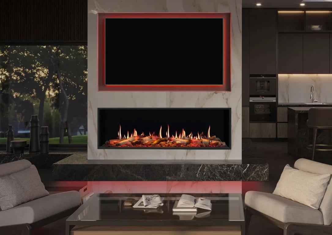 Whether installed as a built-in centrepiece or paired with the Milazzo suite as a wall mounted feature, the Fusion 150RW delivers a sleek, contemporary look that enhances any room. Its expansive display showcases advanced Chromalight® flame technology with customisable colours and dynamic lighting, allowing you to set the perfect mood. Enjoy realistic birch log effect or upgrade to the premium Luxury Logscape Real Woodland log set with or without heat for stunning ambiance all year round.
