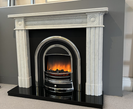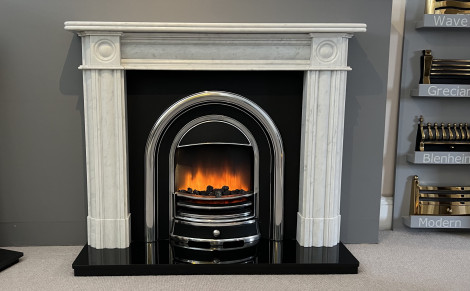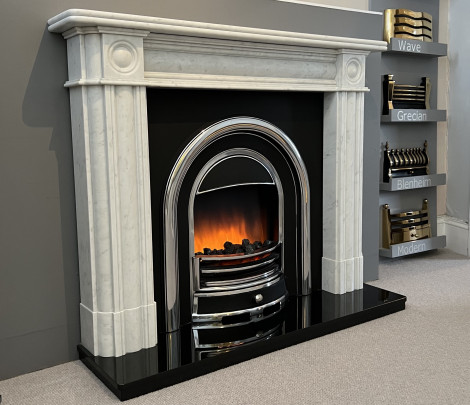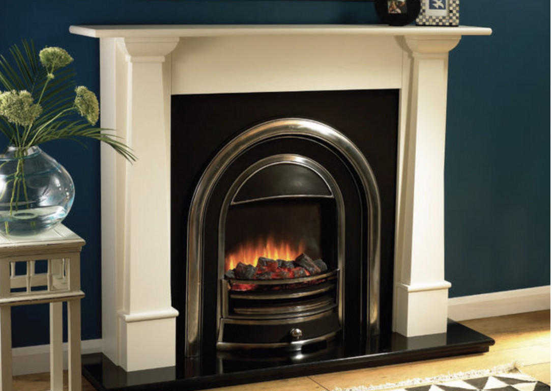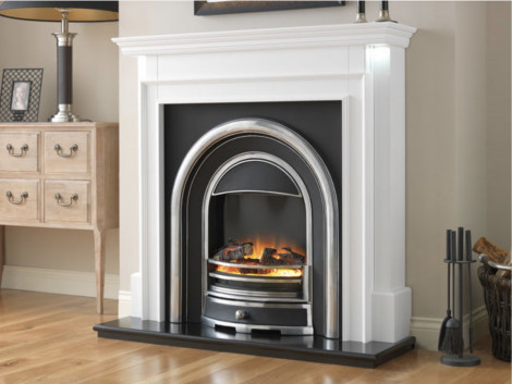 The Tennyson electric cast arch insert gives a stylish option for those looking for a traditional casting but with an electric fire. Made of cast aluminium to give the appearance of iron this greatly reduces the weight and allows for easier installation. Add to this the electric fire is built in to the cast giving the best flame pattern of any electric cast on the market.