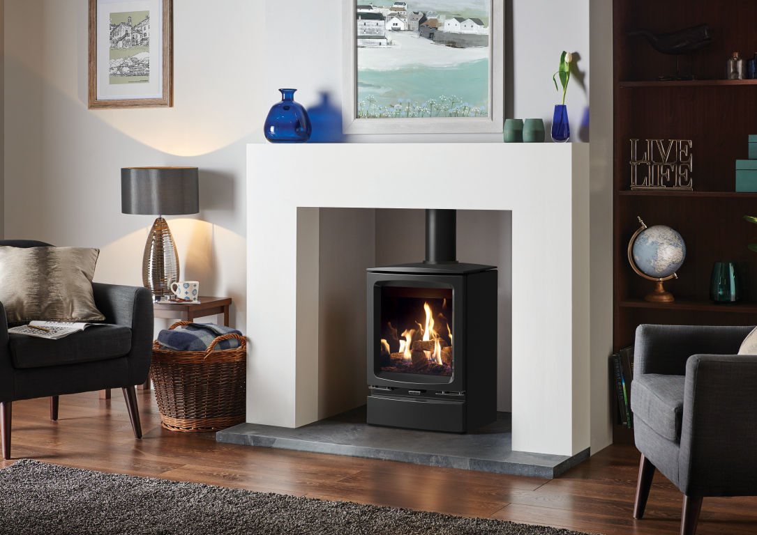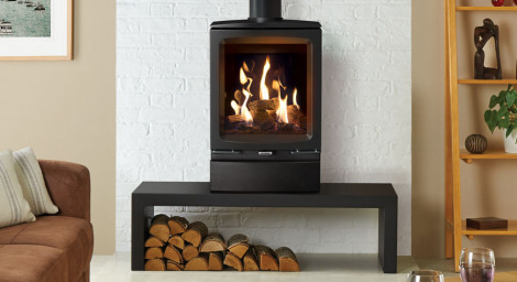 A beautiful stove with a large window so you can really see the flames, the Vogue Midi is a fantastic addition to any home. With the Midline styling option you can add a log store base to add to the woodburning style giving it a realistic feel.